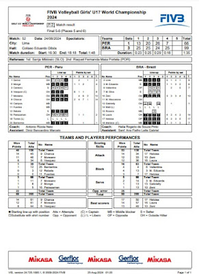 Estación Voleibol.- La selección nacional U-17 logró el sexto casillero del primer Mundial de la categoría U17 Perú 2024, al caer ante Brasil por 1/3 (13/25, 20/25, 26/24, 7/25), en la sede del coliseo "Eduardo Dibós". (24 de agosto)